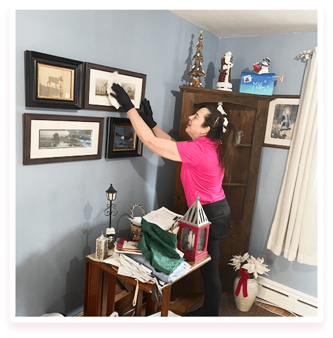 Detailed dusting of vents, blinds, and shelves