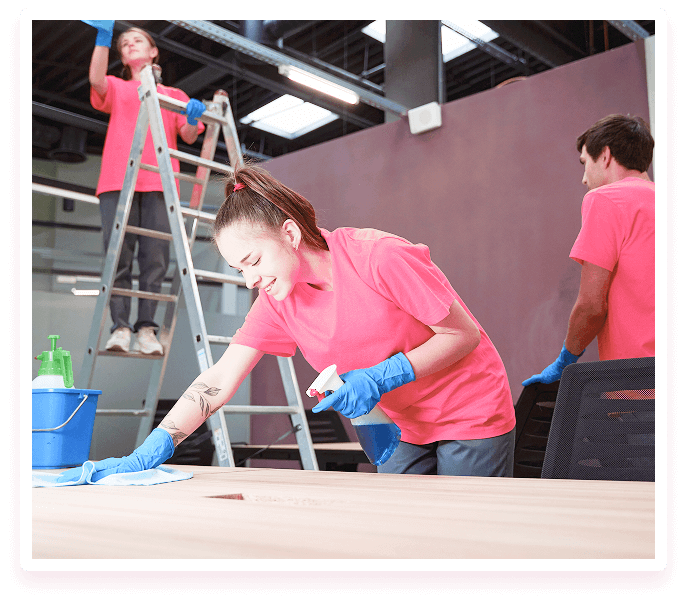 Scrubbing and sanitizing kitchens and bathrooms